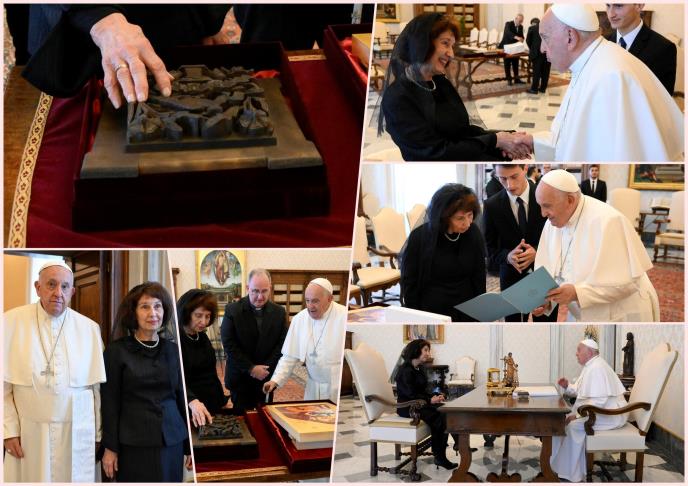 DOBILA PODRŠKU PAPE ZA EVROINTEGRACIJE: Evo kakav je poklon predsednica Severne Makedonije donela u Vatikan (FOTO)