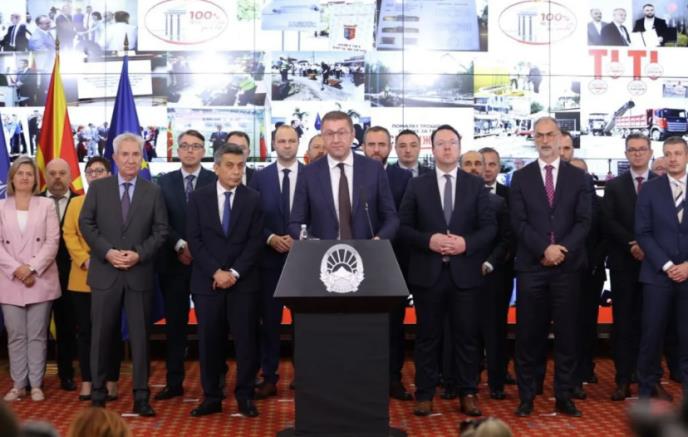 "Ova vlada neće uraditi ništa suprotno interesima građana, nacionalnim interesima i strateškim pravcima građana. Nikada neće učiniti ni jedan ustupak koji će značiti dodatno poniženje i sramotu za makedonske građane, bez obzira da li su Makedonci, Albanci, Turci, Srbi, Vlasi, Romi, Bošnjaci ili drugi", rekao je Mickoski.