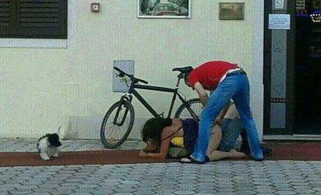 Fotografije snimljene u samom centru Rovinja, koje su snimljene u nedelju, pokazuju par u "ludoj akciji" dok se za treću osobu ne zna da li je aktivni učesnik u činu ili je samo posmatrač.