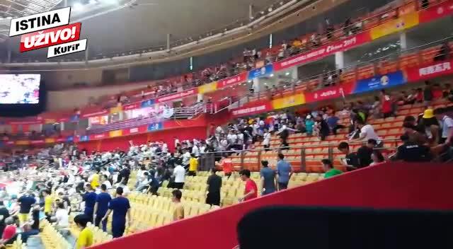Iako se pre utakmice tražila karta više na početku hala u Vuhanu nije bila ni blizu ispunjena.