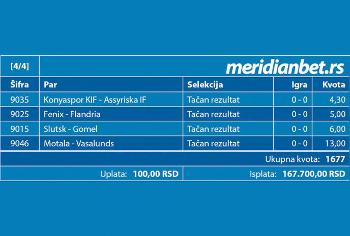 Uživo klađenje je najbolji način da se neki mečevi učine još zanimljivijim, pogotovo što se opklade primaju bukvalno do poslednje sekunde. Pogoditi tačan rezultat na nekoj utakmici uopšte nije lako, a pogoditi na četiri spada u pravo majstorstvo. Kada se takvo majstorstvo primeni na uživo klađenju, onda to dobija status ''velemajstorstva''. da stvar bude zanimljivija, igrač je do kvote 1677 stigao primenivši samo jedan rezultat (0:0)na četiri utakmice koje su bile u toku i pogodio!