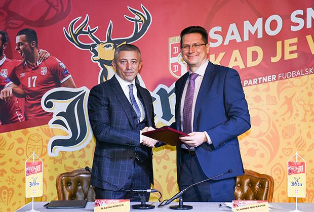 Fudbalski savez Srbije i Apatinska pivara potpisali su trogodišnji Ugovor o saradnji. Na ovaj način Jelen pivo potvrđuje snažnu podršku koju brend već godinama pruža fudbalskoj reprezentaciji Srbije. Ugovor su potpisali Slaviša Kokeza, predsednik Fudbalskog saveza Srbije i Vladimir Novaković, generalni direktor Apatinske pivare.