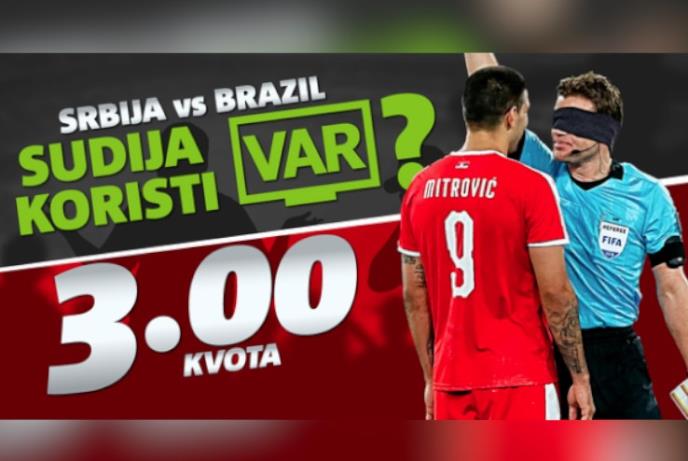 Nadamo se naravno da neće biti potrebe za gledanjem VAR-a, ali ako sudija odluči da na asistenciju VAR tima ispita neku situaciju sa meča Srbija - Brazil - imaš priliku da utrostručiš svoj ulog.