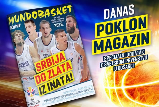 U dnevnim novinama Kurir danas vas čeka poklon magazin - MUNDOBASKET, specijalni dodatak o Svetskom prvenstvu u košarci, sa informacijama o sastavu grupa i reprezentacija, rasporedu takmičenja u grupnoj i eliminacionoj fazi i istorijatu naše selekcije na svim Svetskim prvenstvima.
