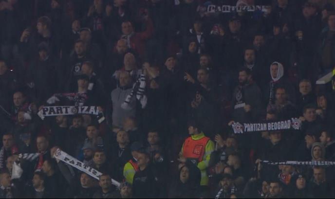 Uz obilje pirotehnike Grobari su na južnoj tribini napravili zavesu od dima i uz pesmu pružili podršku timu trenera Save Miloševića.