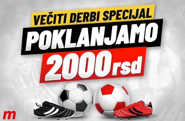 Kladionica Meridian ti ove nedelje poklanja tiket u vrednosti od 2.000 RSD! Registruj se na meridianbet.rs i preuzmi NAJVEĆI BONUS NA SVETU - isprati večiti derbi sa stilom