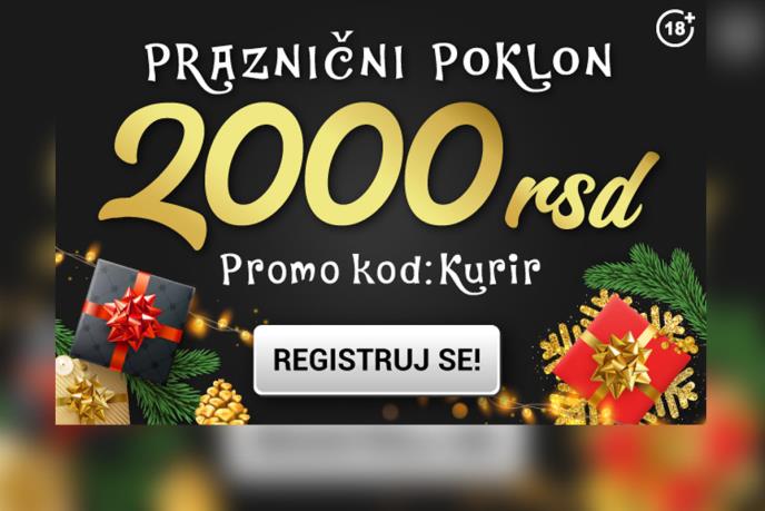 Svako ko se danas registruje na sajtu meridianbet.rs ili putem mobilne aplikacije - uz promo kod “Kurir” – dobija PRAZNIČNI POKLON u vrednosti od čak 2.000 DINARA!