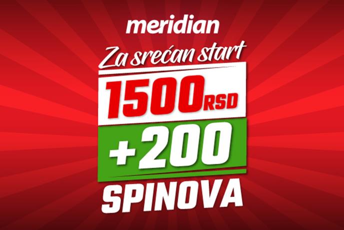 Sve što je potrebno jeste da napravite pravi korak i neverovatni bonusi i spinovi će biti vaši - registrujete na meridianbet.rs, jer na taj način dobijate na poklon idealnu kombinaciju u vidu BONUSA DOBRODOŠLICE - ČAK 1.500 RSD I 200 BESPLATNIH SPINOVA!!!