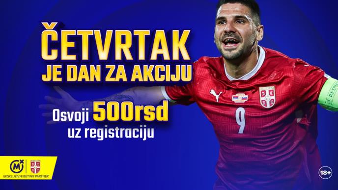 Samo danas, 9. juna, registruj se besplatno na sajtu mozzartbet.com i zaradi pravi bonus od 500 dinara!