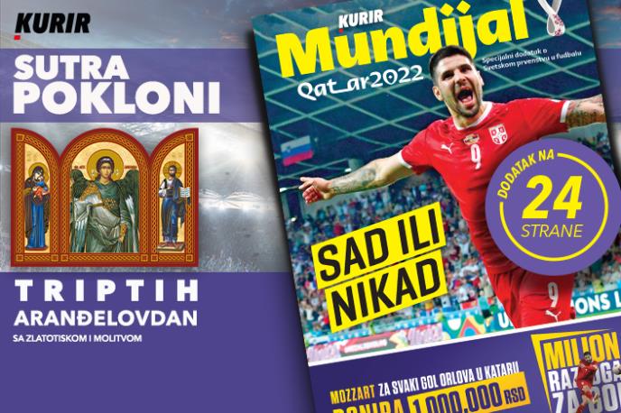 Srpska pravoslavna crkva i vernici sutra slave Aranđelovdan. Tim povodom Kurir vam poklanja ikonu sastavljenu iz tri dela – triptih s likom Svetog arhangela Mihaila u centralnom delu. Kao drugi poklon čeka vas dodatak Mundijal!