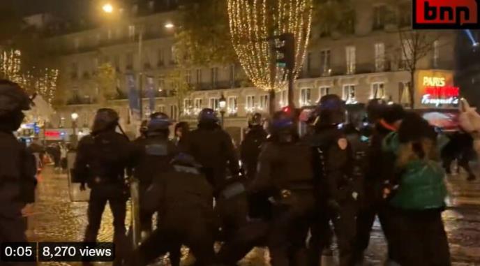 Na Jelisejskim poljima policija je u jednom trenutku pojurila navijače, a objavljeni su i snimci na kojima policajci u borbenom oklopu tuku prisutne.