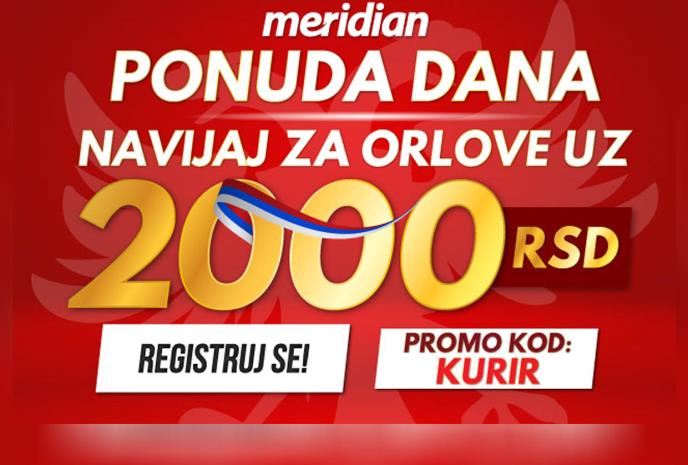 Ponuda dana stiže iz Meridiana: ekskluzivna promocija za sve koji se registruju na meridianbet.rs sajt - svako ko danas otvori nalog na zvaničnom sajtu ili putem mobilne aplikacije dobija BONUS OD 2.000 RSD ZA ONLINE KLAĐENJE, bez ikakvih uslova! Ovo je sjajna prilika da unapredite svoje navijanje i učinite ga još uzbudljivijim.