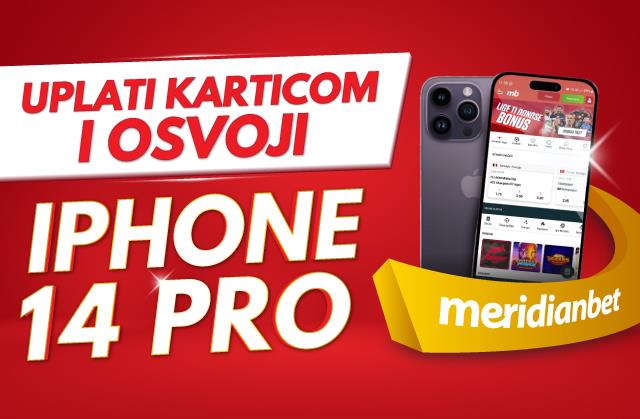 Sportska kladionica Meridian razvila je novu promociju, u kojoj je glavna nagrada upravo iPhone 14 pro, a sve što treba da uradiš kako bi se našao u tvojim rukama jeste da uplatiš depozit putem Visa, Maestro, Dina ili Master kartice!