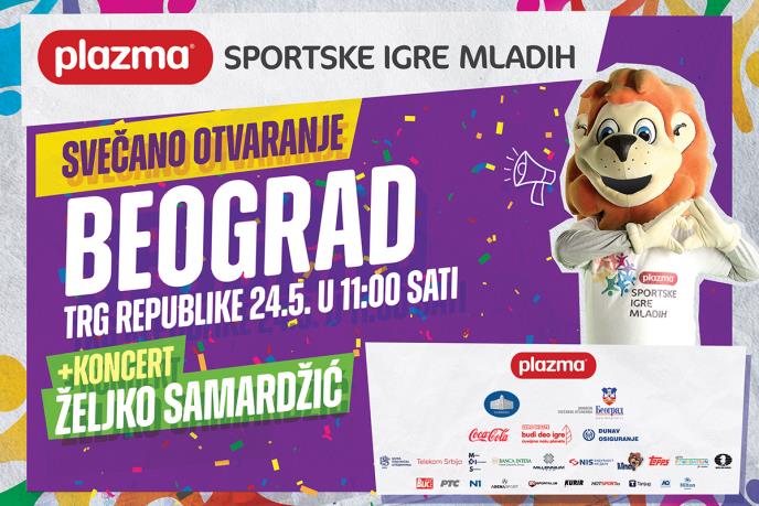 Plazma Sportske igre mladih i Grad Beograd pozivaju Vas na Svečano otvaranje 11. sezone Sportskih igara mladih koje će se održati na Trgu Republike, u petak 24. maja sa početkom u 10 časova.Organizatori su spremili bogat sportski i zabavni program,aktivacijske kornere, druženje sa decom, druženje sa sportistima i naravno sportsko takmičenje za decu.