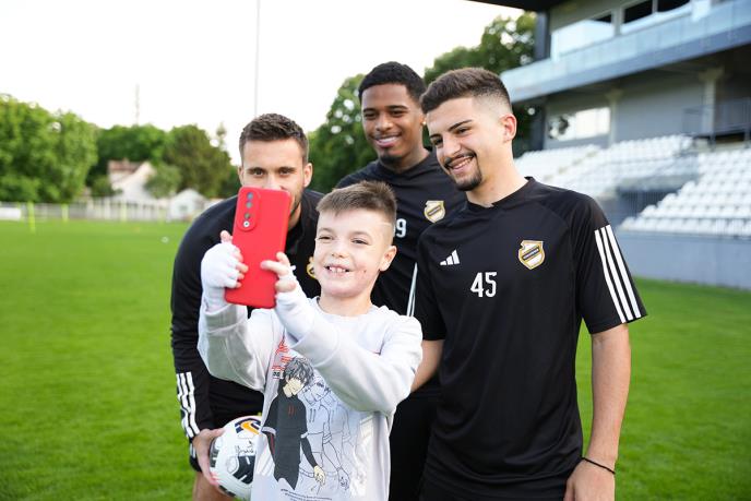 Melo, Adžić i Miladinović uručili su mu poklone i pomogli mu da više puta zatrese mrežu na terenu gde se igra superligaški fudbal, a Ognjen je ispitivao Brazilca sve o najvažnijoj sporednoj stvari na svetu.