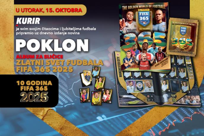 Fudbalska groznica počinje uz Kurir! U utorak, 15. oktobra, stiže nešto što će oduševiti sve fanove fudbala i pasionirane kolekcionare – BESPLATAN Paninijev album za sličice FIFA 365-2025 uz dnevne novine Kurir! Ovaj prestižni album donosi priliku da sakupljate sličice najpoznatijih fudbalskih timova, reprezentacija i najboljih svetskih igrača, stvarajući tako svoju fudbalsku riznicu. Uz album, ulazite u svet strasti, rivalstva i tradicije, gde svaki komadić papira krije magiju sportskih legendi.