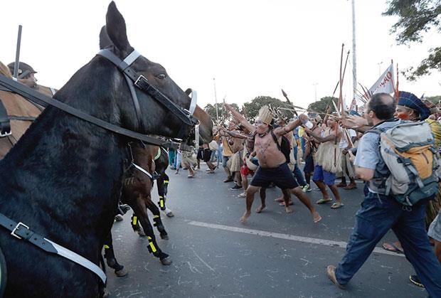 Indijanci iz sliva Amazona nosili su tradicionalnu nošnju a pojedini su ispaljivali strele na policajce. Jednog policajca strela je pogodila u nogu i on je operisan da bi se ona uklonila