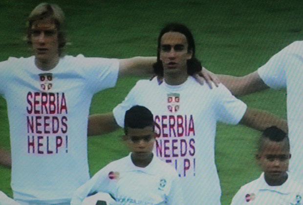 SAO PAULO - Fudbalski reprezentativci Srbije na prijateljski meč sa Brazilom izašli su u majicama na kojima je pisalo: "Srbiji je potrebna pomoć".