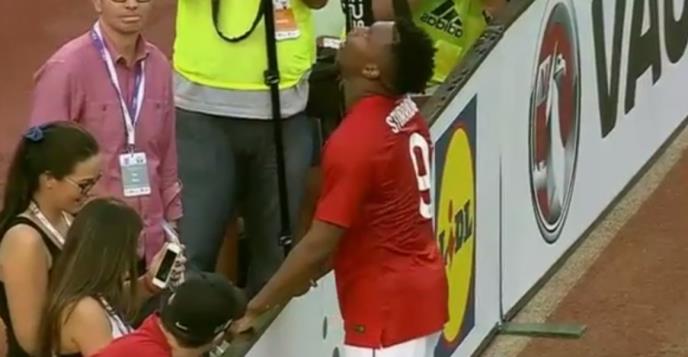 U sudijskoj nadoknadi vremena, Staridž je prišao reklamnim panoima kako bi uzeo loptu i vratio je u igru, a tada je ka njemu poleteo sok sa tribina.