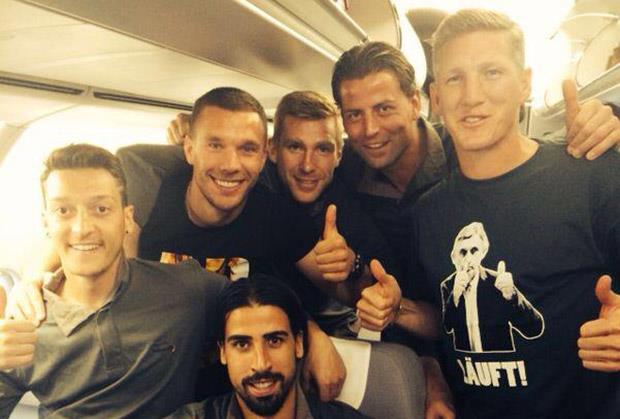 Fudbaler Bajerna obukao je majicu sa likom Svetislava Pešića koji drži oba palca podignuta uvis i porukom koja bi mogla da se prevede i kao "Napred". Pored Švajnija na slici se mogu videti Sami Kedira, Mesut Ozil, Lukas Podolski, Per Mertesaker i Roman Vajdenfeler kako sa uzdignutim palčevima imitiraju Pešića. Srpski stručnjak je izuzetno cenjen u Nemačkoj, pre svega zbog titule prvaka Evrope koju im je doneo kao selektor 1993. godine.