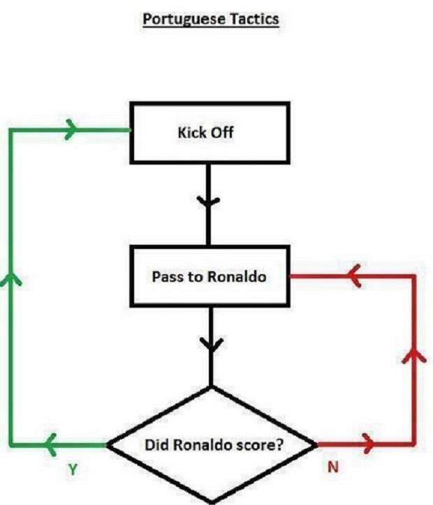 Prema ovoj "taktici" cilj je poslati loptu ka Ronaldu i sačekati da se vidi da li će postići go. U slučaju da ne uspe, savet je da se proba ponovo... I ponovo...