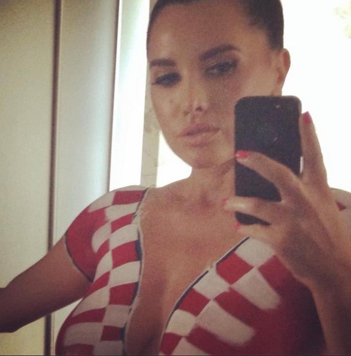 Dino Drpić nije među 23 reprezentativaca Hrvatske, koji nastupaju na Mundijalu. Nives je snimilan navijačku himnu "Take me to Brazil", a onda je otišla i korak dalje. Ona je grudi ofarbala u crveno-bele kockice, a fotografiju je objavila na društvenim mrežama.