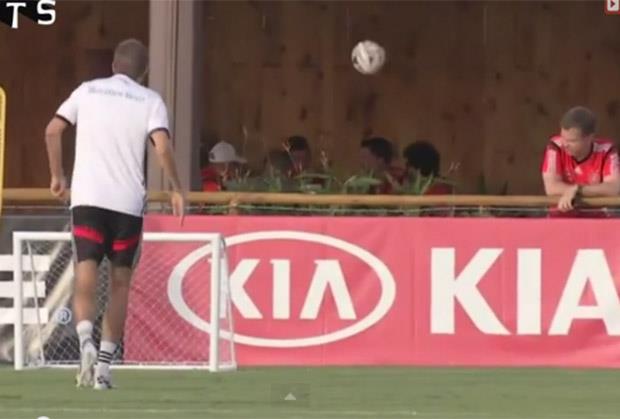 Nemački reprezentativac Tomas Miler pogodio je loptom u lice čoveka koji je u tom trenutku ručao u restoranu pored igrališta gde su Nemci trenirali.