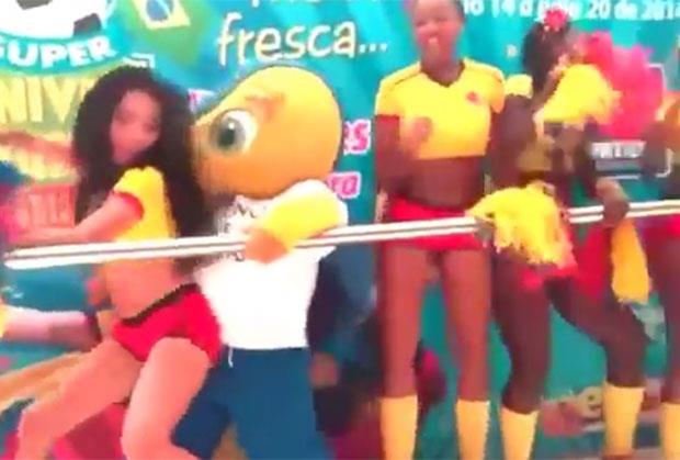 RIO - Zvanična maskota Svetskog prvenstva u Brazilu, Fuleko, izveo je seksi ples sa atraktivnim navijačicama.