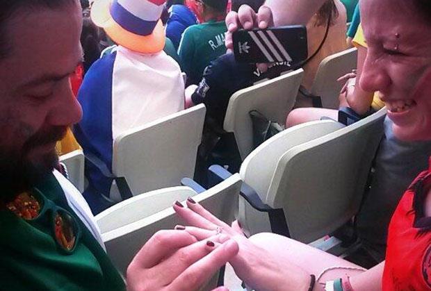 Meč između Meksika i Holandije odigran je u Fortalezi. Meksički navijač je odlučio da zaprosi verenicu u trenutku kada se Meksikanci budu plasirali u četvrtfinale Mundijala.