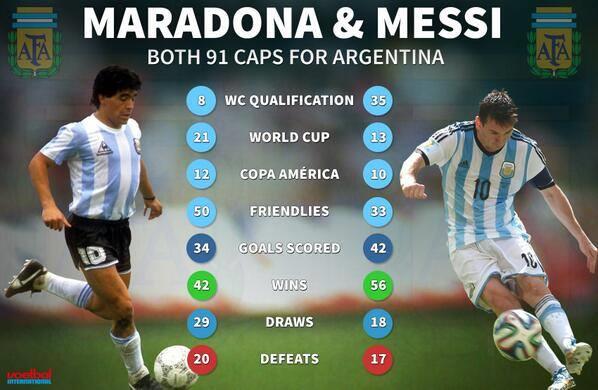 Mesi je postigao više golova, 42 prema 34 Maradonina, upisao je 56 pobeda naspram 42 Maradonine, i ima 3 poraza manje.