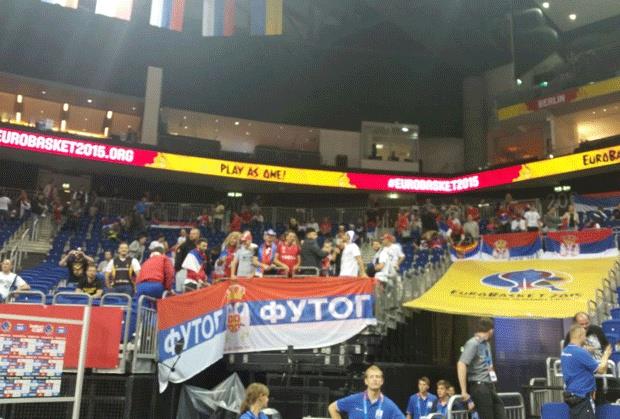 Reprezentacija Srbije ima veliku podršku na premijernoj utakmici Evrobasketa sa Španijom.