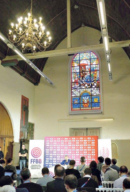 Igrači i trener „trikolora“ pričali s novinarima u sali koja je namenjena crkvenim događajima, a sada služi za Evropsko prvenstvo