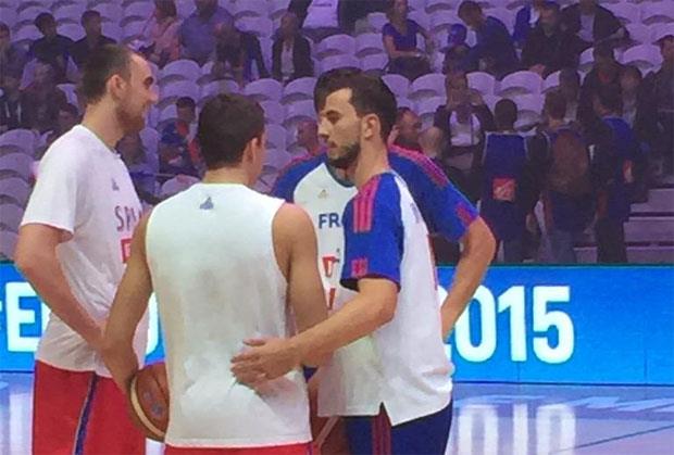 LIL - Bivši košarkaši Partizana, a sada reprezentativci Srbije i Francuske, imali su prijatan razgovor pre početka meča za bronzanu medalju na Evropskom prvenstvu u Lilu.