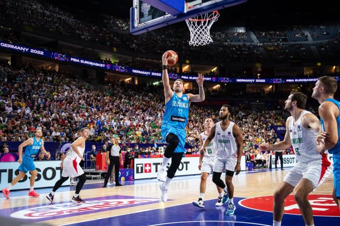 Košarkaši Slovenije pobedili su večeras u Kelnu selekciju Madjarske sa 103:88 (29:16, 25:17, 34:27, 15:28), u utakmici drugog kola Grupe B na Evropskom prvenstvu.