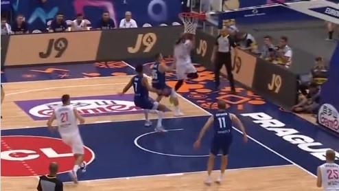 Nikola Kalinić je izveo loptu, Marko Gudurić je krenuo ka košu, a onda vratio loptu do Dejana Davidovca koji je pogodio na neverovatan način.