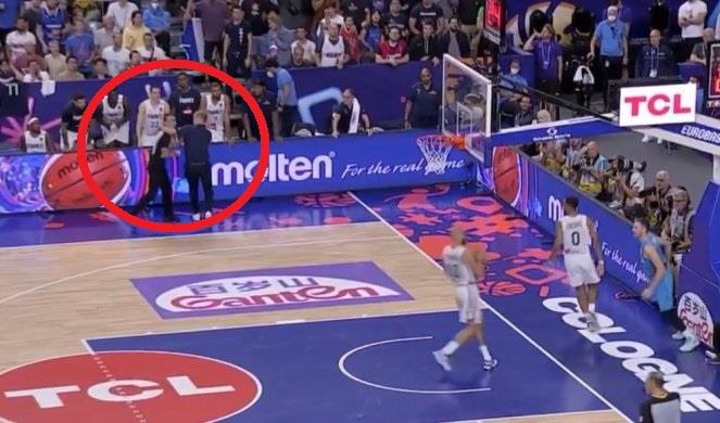 Tokom meča dogodila se jedna nesvakidašnja situacija u trenucima kada se utakmica "lomila". Naime selektor Francuske je stajao blizu aut linije i mahao rukama kako bi svojim igračima objasnio kakvu akciju da izvedu, a u tom trenutku je sudija, koji je trčao ka košu, "naleteo" na njegovu ruku.