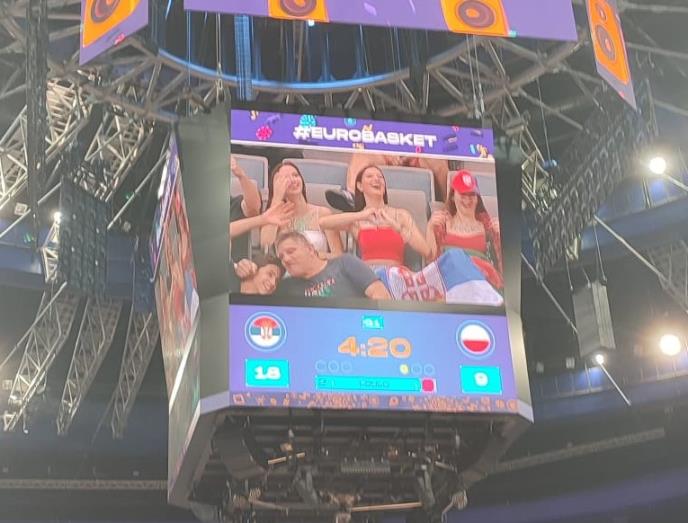 Iako natpisi na grudima lepih devojaka nisu najjasniji, čini se da su navijačice Srbije ispisale prezimenaimena naših košarkaša Vasilija Micića, Ognjena Jaramaza, dok je treći natpis veoma teško razjasniti... Ta scena je prikazana i na centralnom monitoru u O2 areni u Pragu na veliko zadovoljstvo publike u hali.