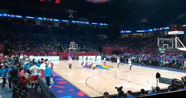 Organizatori su odlučili da malo razgale srpske navijače u hali, te su im pustili dobro poznatu pesmu.