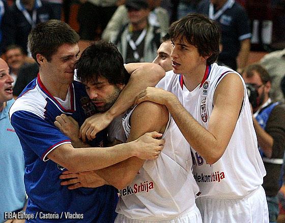 Posle velike borbe i preokreta u drugom poluvremenu najmlađi tim na prvenstvu sjajno je odigrao u završnici i produžetku i predvođen fantastičnim Milošem Teodosićem (32 poena) pobedio Sloveniju od koje je izgubio u grupi.