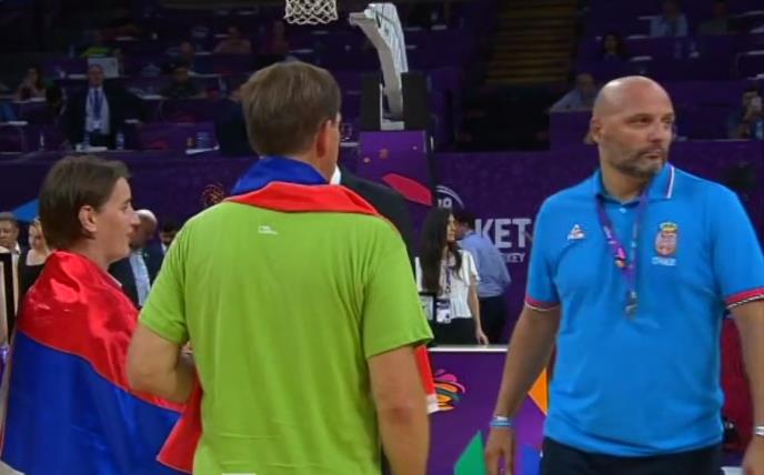 Selektor košarkaške reprezentacije Srbije Aleksandar Đorđević nije se pozdravio sa premijerkom Srbije Anom Brnabić prilikom dodele medalja.