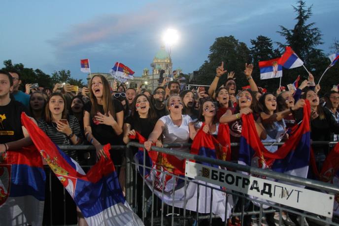 "Hvala vam od srca, što nas bodrite, što nam dajete snagu, hvala na svemu" Stefan Jović je takođe rekao da je presrećan što je prvi put na balkonu, malo je nedostajalo da uzme gitaru, ali nije, uz Đorđevićevu šaljivu opasku kako ne mora i ovde da svira.