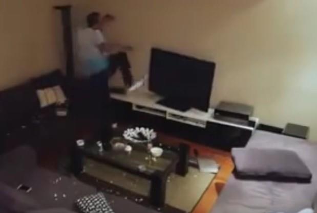 Muškarac je u početku psovao, zatim je počeo da prosipa kokice po stanu, da bi na kraju od muke stradao televizor. Na kraju ga je pošteno izgazio i junački pljunuo.