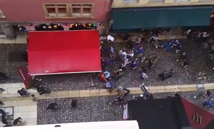 Na društvenim mrežama pojavio se video snimak iz Liona žestoke tuče navijača engleske i francuske.