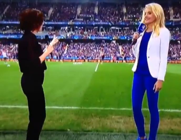 Francuska televizija skoro da je izbezumila sve gledaoce, kada je uz pomoć moderne tehnologije spojila voditeljku iz studija sa novinarkom koja izveštava direktno sa travnatih terena.