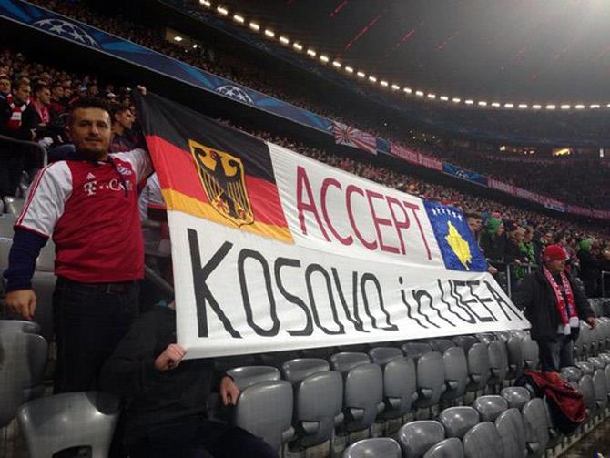 MINHEN - Grupa navijača minhenskog Bajerna na utakmici Lige šampiona u Minhenu sa češkom Viktorijom istakla je transparent sa porukom "Primite Kosovo u UEFA".
