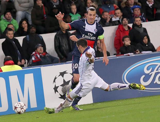 Fudbaler Pari Sen Žermena Zlatan Ibrahimović pokušao je da šutne srpskog reprezentativca iz redova Anderlehta Luku Milivojevića tokom meča Lige šampiona.