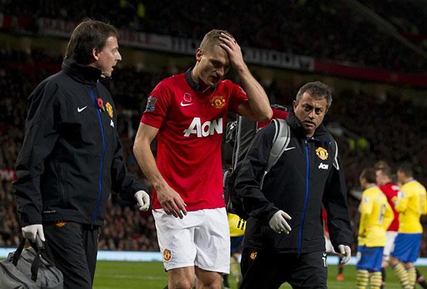 MANČESTER - Kapiten Mančester junajteda Nemanja Vidić povredio se u finišu prvog poluvremena derbi utakmice 11. kola Premijer lige sa Arsenalom posle sudara sa golmanom svog tima Davidom De Heom.