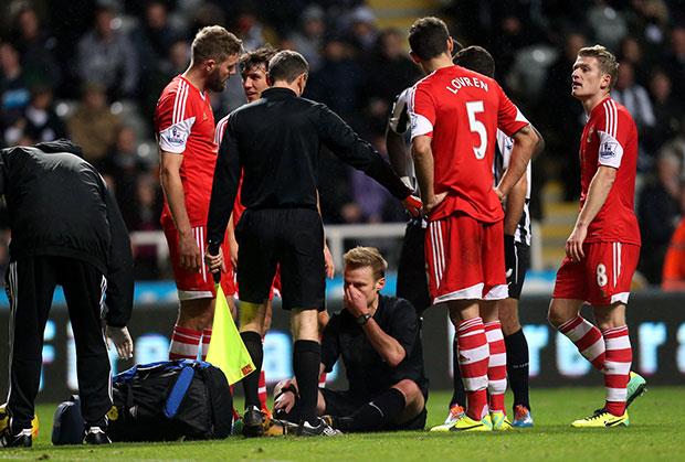 NJUKASL - Fudbaler Njukasla Musa Sisoko nenamerno je nokautirao glavnog sudiju Majka Džonsa na meču sa Sautemptonom u 16. kolu Premijer lige.