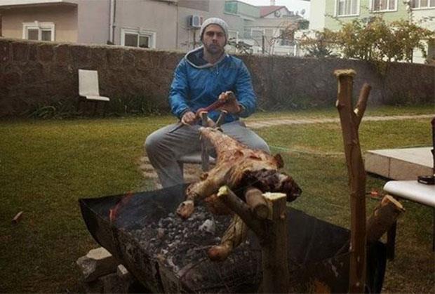 MANISA - Fudbaler turskog drugoligaša Manise Srbin Slavko Perović objavio je na Fejsbuku sliku kako na ražnju peče prase za Božić.