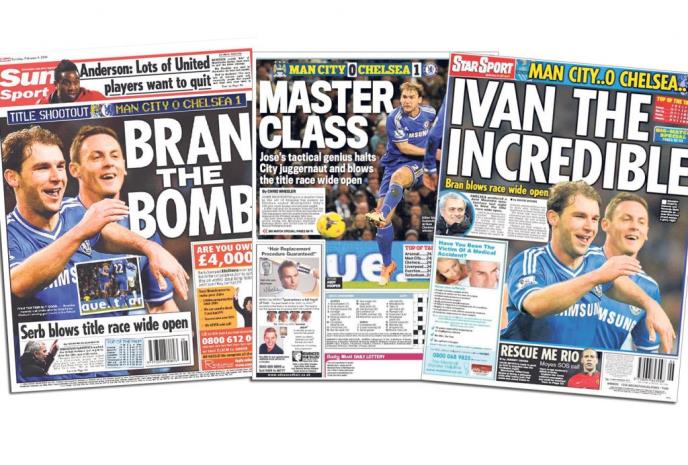 Sportski dodatak jednog od najtiražnijih dnevnih listova na Ostrvu San na naslovnoj strani objavio je fotografiju Branislava Ivanovića i Nemanje Matića uz naslov „Bran the Bomb“. Ivanovića u Engleskoj ne zovu Bane nego Bran. I ostali naslovi, poput „Master-klas“ ili „Neverovatni Ivan“, najbolje opisuju predstavu naših fudbalera u ponedeljak veče.